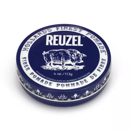 Reuzel Fiber Pomade to granatowa włóknista pomada, która zapewnia teksturę z mocnym, ale elastycznym utrwaleniem o niskim połysku.