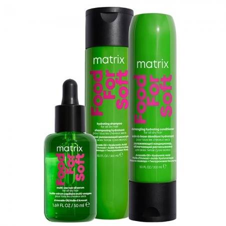 Formuły gamy FOOD FOR SOFT, składającej się z szamponu, odżywki i olejku do włosów, wzbogacone są olejem z awokado, który pomaga zamknąć łuskę włosa przeciwdziałając utracie wilgoci. Dodatkowo formuły szamponu i odżywki FOOD FOR SOFT wzbogacone są kwasem hialuronowym, który wspiera odpowiednie nawilżenie wszystkich rodzajów włosów.
