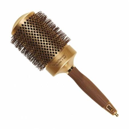 Olivia Garden Nano Thermic 64 mm z jonizacją i turmalinem pokryta została ceramiką, przez co szybciej się nagrzewa i dłużej utrzymuje temperaturę. Nowe, większe otwory przyspieszają czas suszenia oraz zwiększają przepływ powietrza a przy okazji skracają czas modelowania włosów. Włókna szczotki wykonane w specjalnej technologii Heat Resistant & Soft Tip są lekko karbowane przez co bardziej odporne na ciepło suszarki. Ponadto końcówki włókien są delikatnie zaokrąglone, dzięki czemu są bezpieczne dla skóry głowy i włosów.