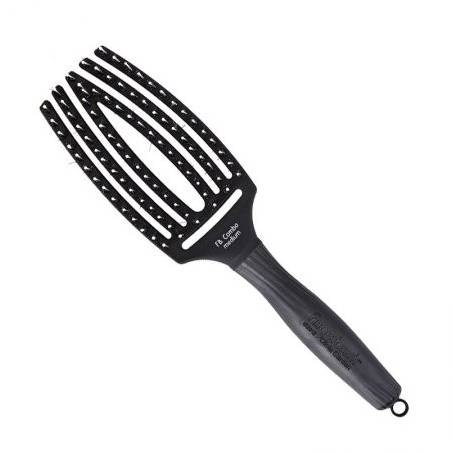Szczotka Olivia Garden Finger Brush M posiada specjalnie profilowany kształt głowicy, dzięki temu lepiej masuje skórę głowy. Oprócz tego wyróżnia ją specjalne połączenie antystatycznych kolców zakończonych kulką z 100% włosia z dzika. Włosy zyskują objętości oraz blasku. Idealnie sprawdzi się zarówno w salonie fryzjerskim oraz w domowym zaciszu