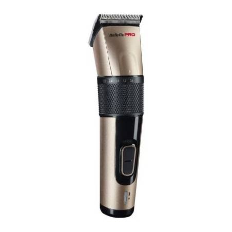 BaByliss PRO Cut-Definer Maszynka przewodowo-bezprzewodowa z pewnością zadowoli profesjonalistów. Urządzenie wyposażone jest w akumulator NiMH. Posiada ostrze ze stali nierdzewnej o szerokości 45mm. Maszynka pracuje bez naładowania 75 minut, zaś do naładowania potrzebuje 8 godzin. Urządzenie pozwala na regulację wysokości strzyżenia w zakresie 0.6-3mm. Do zestawu dołączono 8 nakładek dystansowych, walizeczkę, szczoteczkę i olejek do konserwacji. Wbudowana dioda informuje o poziomie naładowania. Ostrze wykonuje aż 700 obrotów na minutę. W zestawie również podstawka z ładowarką.
