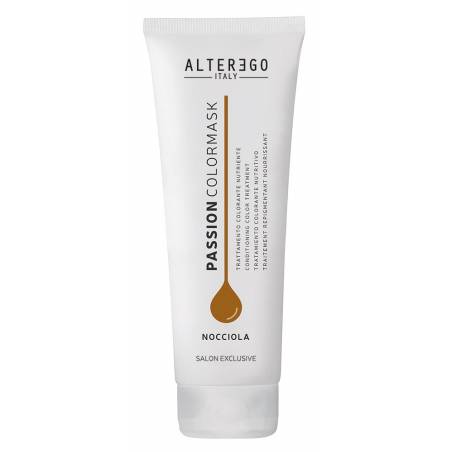 Alter Ego Passion Maska koloryzująca z olejkami w kolorze orzecha laskowego sprawia, że włosy są odżywione, nabłyszczone, zyskują do tego głęboki i żywy kolor. Maski Alter Ego to odżywcze kosmetyki zarówno do włosów farbowanych, jak i naturalnych. Kosmetyki te rozświetlają włosy, odświeżają też doskonale kolor między kolejnymi farbowaniami i sprawiają, że włosy są bardziej podatne na układanie. W składzie kosmetyku znajduje się oleje INCA, który zawiera bogactwo kwasów tłuszczowych Omega 3. Włosy na nowo stają się elastyczne, łuski ponadto zostają domknięte, dzięki czemu kosmyki są gładkie i miękkie. Dodatkowo witamina E zawarta w preparacie działa przeciwstarzeniowo i chroni włosy przed stresem oksydacyjnym. Formuła masek koloryzujących Alter Ego pozbawiona jest amoniaku oraz nadtlenku wodoru.