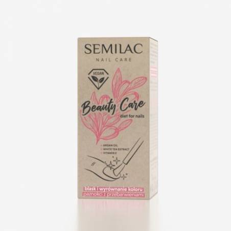 Semilac Beauty Care to wegańska, wyrównująca koloryt odżywka do paznokci pozbawionych naturalnego blasku. Daje efekt wygładzenia nierówności i mikrouszkodzeń płytki paznokciowej. Już 10 dni kuracji sprawia, że paznokcie zyskają większą elastyczność i zdrowy wygląd, dając efekt manicure jak z salonu.