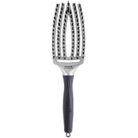 Szczotka Olivia Garden Finger Brush .posiada specjalnie profilowany kształt głowicy, dzięki temu lepiej masuje skórę głowy. Oprócz tego wyróżnia ją specjalne połączenie antystatycznych kolców zakończonych kulką z 100% włosia z dzika. Włosy zyskują objętości oraz blasku. Idealnie sprawdzi się zarówno w salonie fryzjerskim oraz w domowym zaciszu.