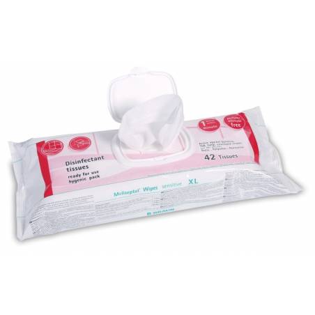 sensitive dostępne są teraz w praktycznym opakowaniu typu flow-pack. Gotowe do użytku chusteczki do dezynfekcji wykonane są z miękkiej, niestrzępiącej włókniny. Miękki materiał umożliwia dezynfekcję nawet wyjątkowo wrażliwych przedmiotów z łatwą do zarysowania powierzchnią. Dzięki specjalnemu sposobowi składania możliwe jest higieniczne wyjmowanie z opakowania pojedynczych chusteczek. Syntetyczny materiał zapewnia ponadto optymalne przenoszenie roztworu dezynfekcyjnego na przecierane powierzchnie. Chusteczki Meliseptol wipes sensitive nasączone są preparatem Meliseptol Foam pure, który doskonale tolerowany jest przez większość produktów, nawet tych wrażliwych na działanie alkoholu.Chusteczki Meliseptol wipes sensitive dostępne są w standardowym rozmiarze w opakowaniu typu flow-pack à 100 sztuk lub jako chusteczki XL w opakowaniu typu flow-pack à 42 sztuki.