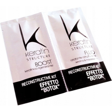Dwuskładnikowy zestaw do szybkiej kuracji keratynowej włosów oparty na aktywnej keratynie i olejku makadamia.